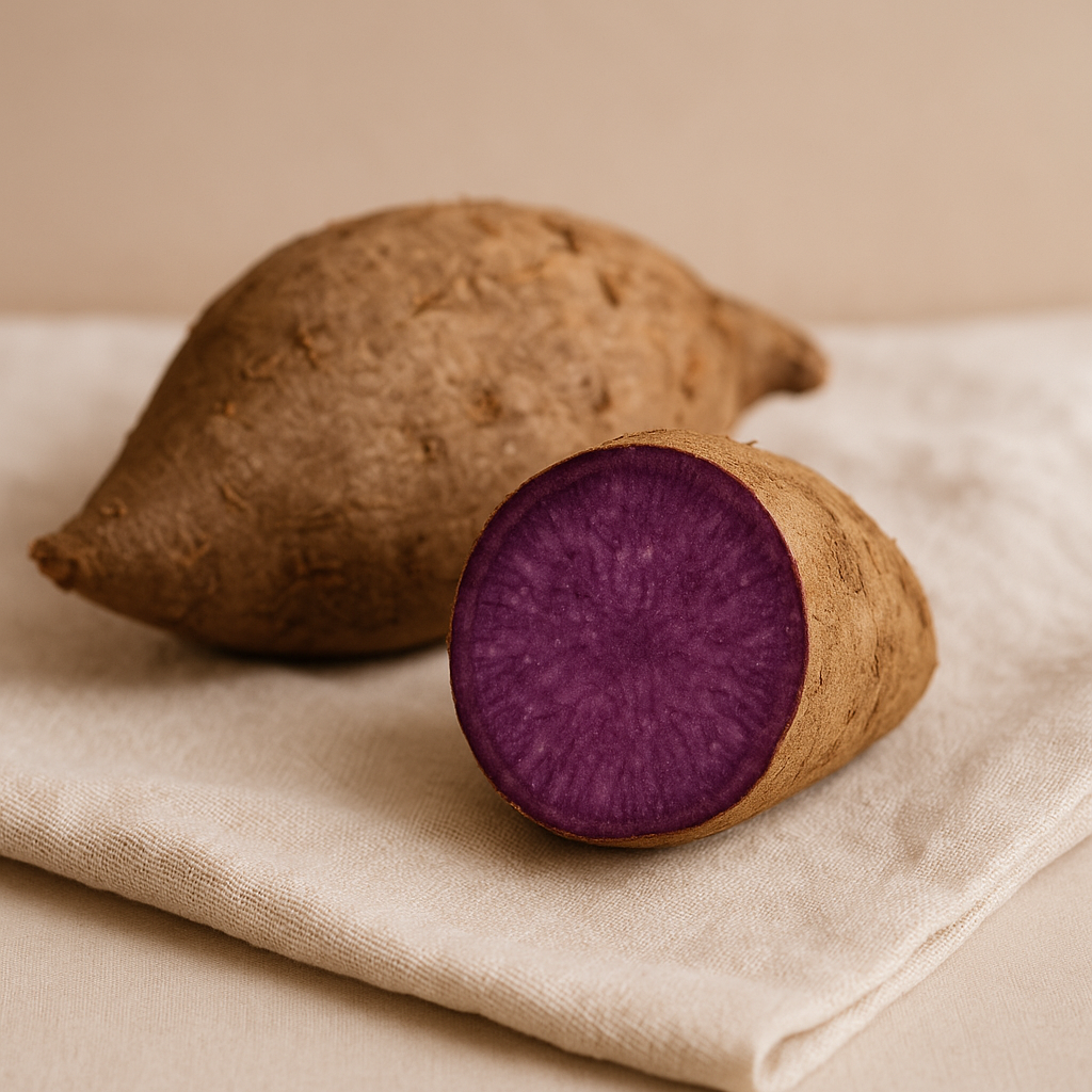 Traditionnellement utilisé dans de nombreuses recettes asiatiques, il est apprécié pour sa saveur douce, légèrement vanillée, et sa texture onctueuse une fois cuite ou réduite en poudre. Plus qu’un simple ingrédient coloré, l’Ubé est une plante racine ancestrale, cultivée depuis des siècles pour sa polyvalence en cuisine et son apport naturel en fibres et micronutriments essentiels.